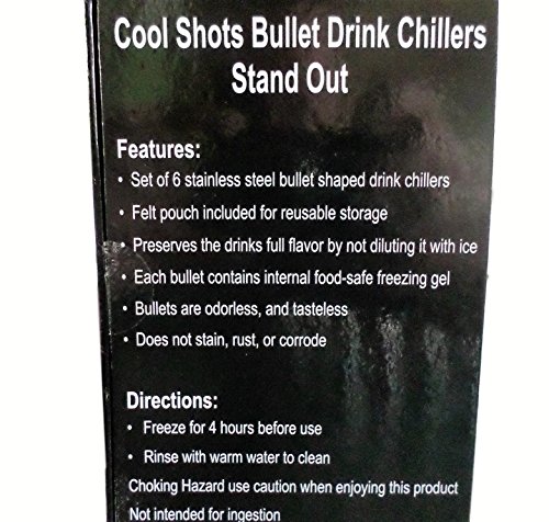 -. Feature : -Whiskey Bullet Design Ice Cube Substitutes to Quickly Chill Your Drink from your favorite cocktail to iced coffee and tea without diluting the drink itself with ice. / -Enjoy Your Beverage Longer with this Set of Six Stainless Steel Whiskey Bullet Stone Chillers making it a perfect whiskey gift for groomsmen,home bar owners, and even business partners! / -Preserve Liquors Natural Flavor, perfect for glasses of Bourbon, Jack Daniels,Wild Turkey, Crown Royal, Makers Mark, Jamesons, Dewars,Jim Beam, Scotch , looking great in whiskey and scotch glasses / -Enjoy the Cold Glass of Whiskey,Bourbon, Scotch ,Coffee ,Wine or Tea with stainless metal bullet shaped rocks the way it should be,without the watering down of ice cubes. / -Unique Stainless Bullet Design is perfect for all types of whiskey glasses and guaranteed not to scratch the glass with great looking gift box and storage bag!