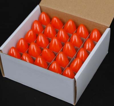 Novelty Lights 25 pack C7 ceramic opaque incandescent replacement bulbs works great for any indoor or outdoor lighting application that requires this retro fit tradition C7 bulb. This bulb works great for house rooflines during the holiday season or strung in a canopy patio application.