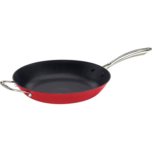 -. Title : Cuisinart Castlite Non-Stick Cast Iron 12" Fry Pan W/Helper - Red