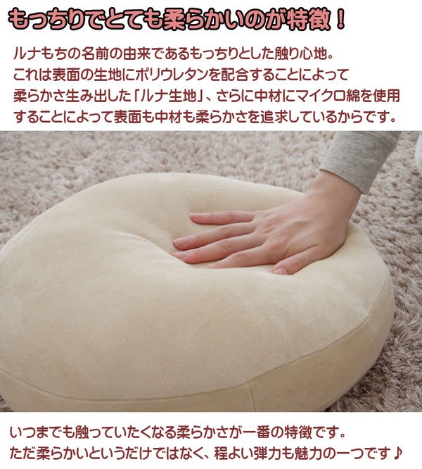 【商品名】クッション 腰当て 肘置き マイクロファイバー 無地 セアテ 『ルナもち』 ベージュ 約40R×6cm