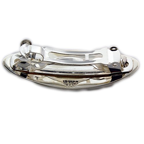 926 Sterling Silver Weight 9.9g (approximate) Dimensions: 43 x 16mm (1.7 x 0.63 Iches Approximately) This hair barrette has a steel holding clip at the back of the piece (only component not sterling silver). Steel is the most suitable material for its properties of strength_ memory (for repeated operation)_ reliable functionality_ durability_ and satisfactory service for a long time The high polished smooth surface can be engraved by a professional jeweler