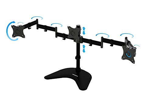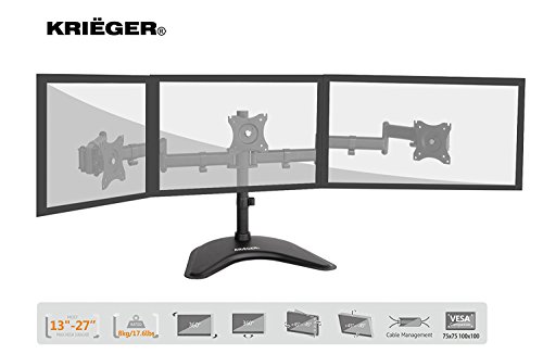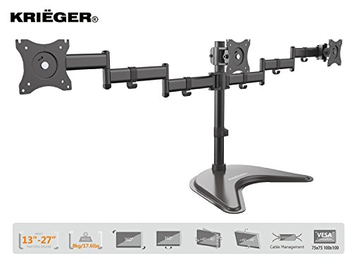 KRIËGER KL3327B • Triple Monitor Desk Free Stand Mount Full Motion Articulating Arm LCD, OLED, 4K Computer Displays, Fits 17, 19, 20, 22, 23, 24, 27" VESA 75 100, Swivel, Rotate, Tilt