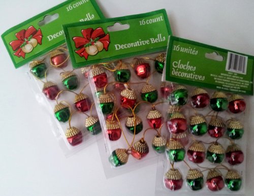 -. Title : Christmas Ornaments Decorative Small Jingle Bells 16 Ct Green Red