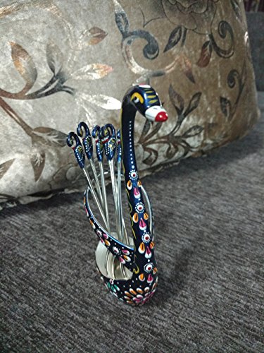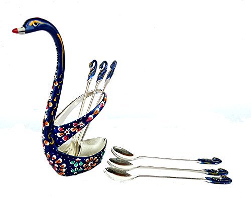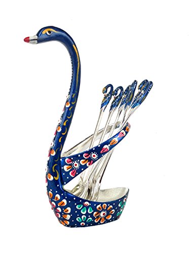 This handcrafted swan shaped 6 spoon set with swan shaped stand is made of pure brass silver plated . It is also an ideal gift for your friends and relatives. The gift piece has been prepared by the creative artisans of Jaipur Created By Rastogi Handicrafts Innovation Team