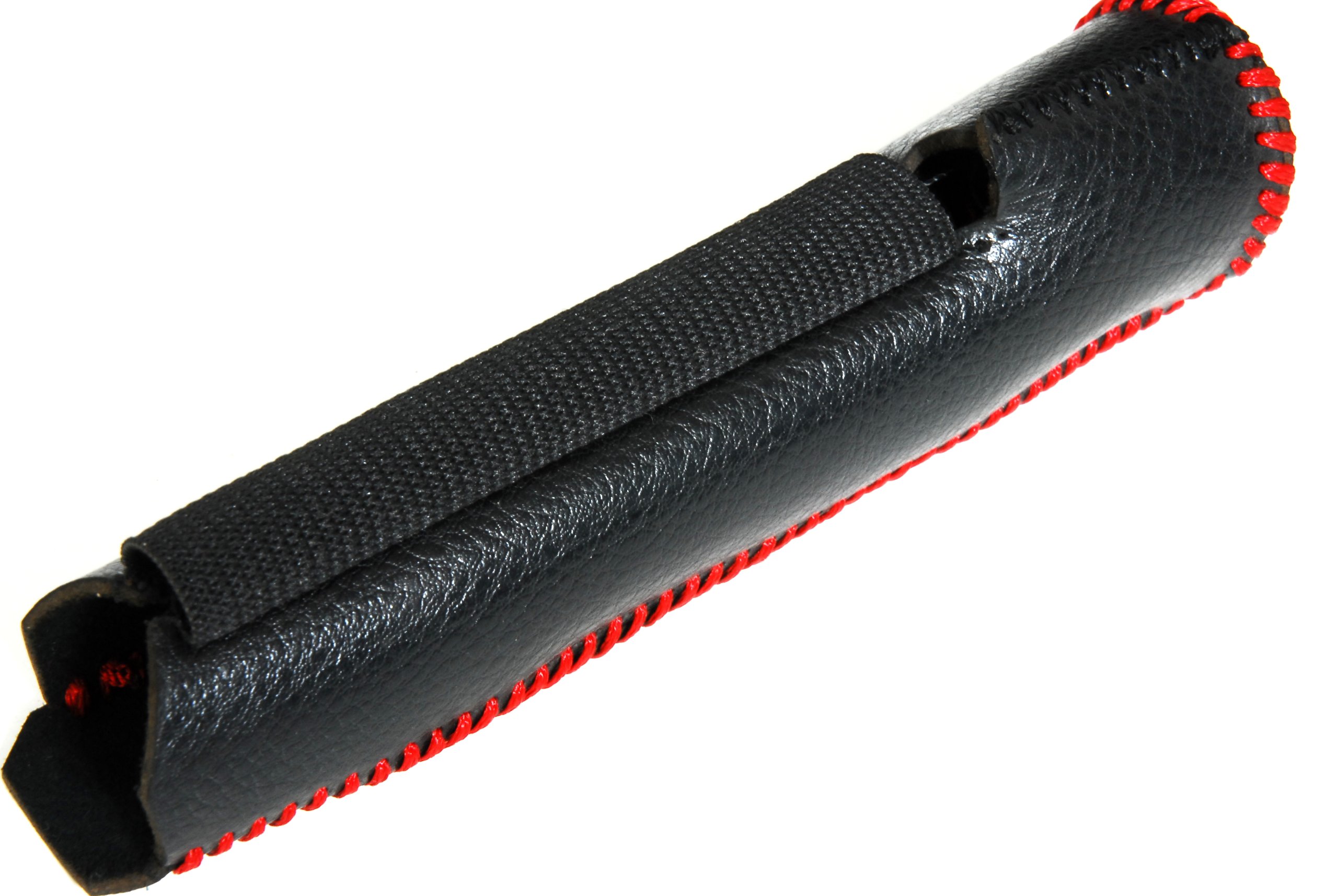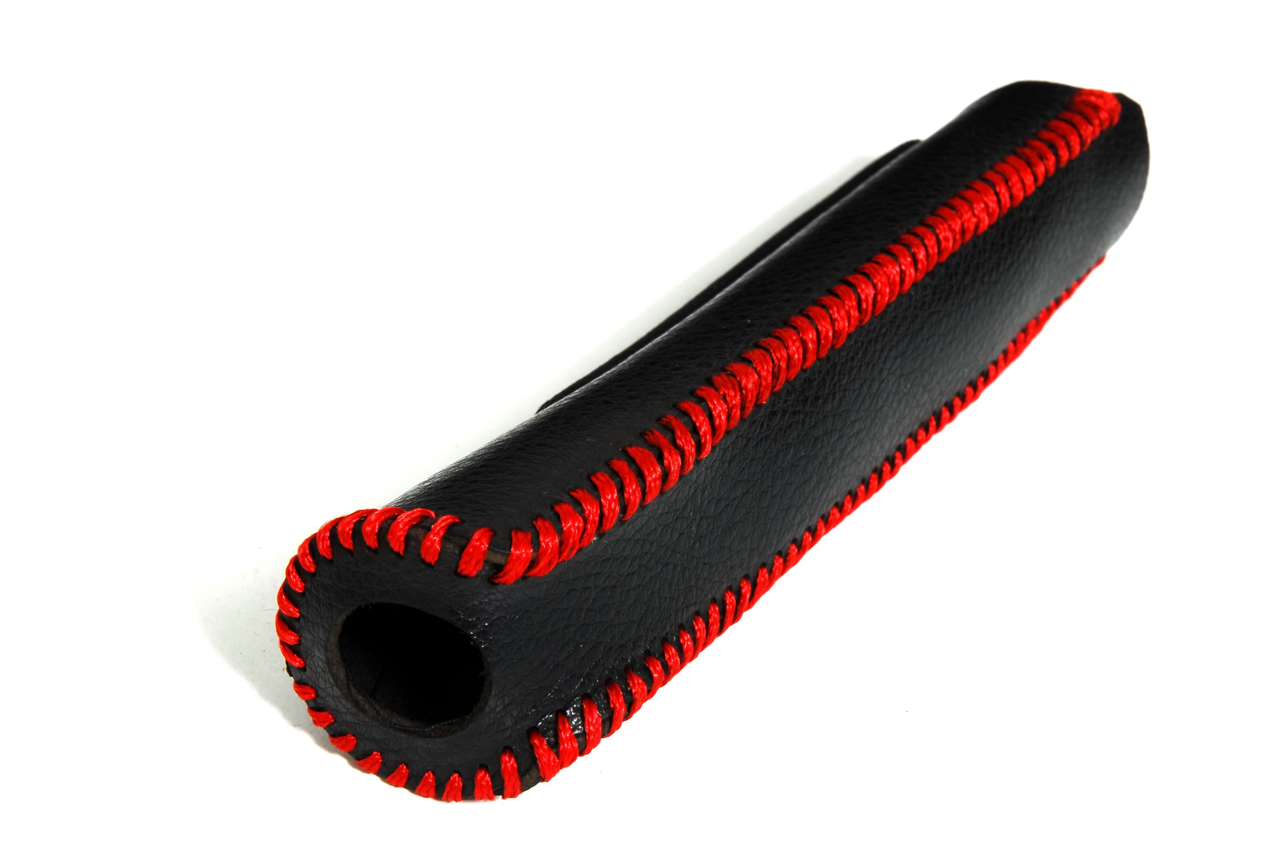 Life Connection mounted 1 minute! Leather general purpose hand brake cover + microfiber towel (set of 2) Black × red stitch luxury handmade Mazda
