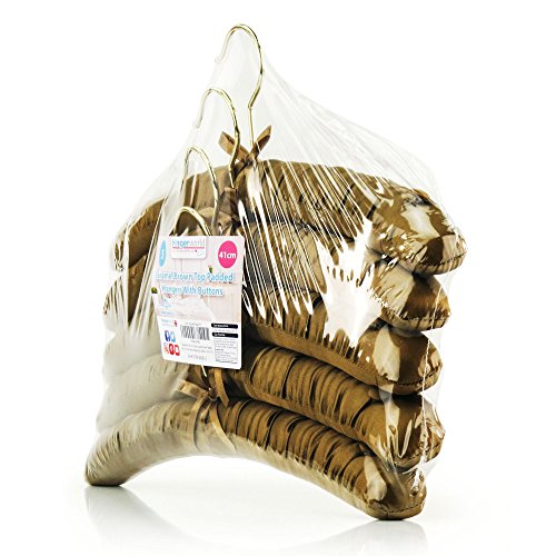 -. Title : Hangerworld Pack of 5 Quality Caramel Brown Padded Satin Top Coat Clothes Hangers with Buttons - 41cm (16")