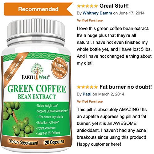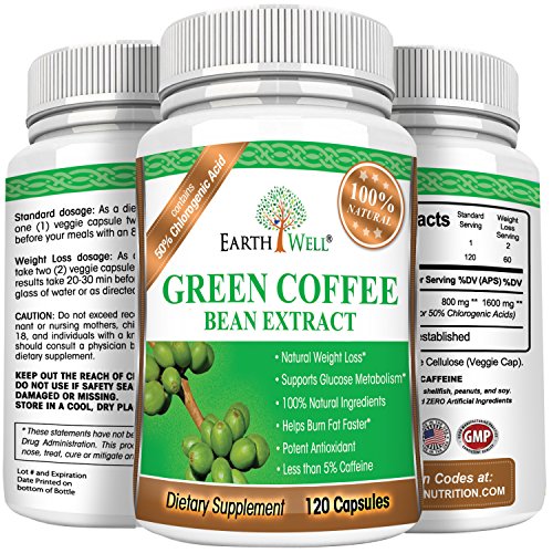 -. Feature : LOSE WEIGHT NATURALLY. Do you want to lose weight naturally with a dietary supplement promoting a healthy weight loss, burning both sugar and fat rapidly, boosting your metabolism and slowing the release of sugar into your bloodstream? These benefits were demonstrated in clinical trials showing green coffee pills can increase your weight loss by two or three times compared to people who only diet and exercise. / NO SIDE EFFECTS. Most users report zero side effects. On the contrary, many customers enjoyed increased energy and less mood swings (perhaps due to less blood sugar fluctuations). Our all natural supplement is made in the USA, with the highest quality coffee beans available. We follow Good Manufacturing Practice (GMP) as well as internal testing and quality controls. Our product is 100% natural, there are zero fillers, zero binders and zero artificial ingredients, only pure natural elements. / AMAZING RESULTS and testimonials from thousands of customers show Earthwell green coffee supplement works for rapid natural weight loss. Even sceptical users were surprised. It works for all different body shapes, from overweight people to people who are quite healthy and fit but want to lose their last pounds of extra belly fat. / New Green Coffee formula with more GCA (Green Coffee Antioxidant), the highest amount of GCA per capsule on Amazon. Our new formula has more green coffee antioxidants than any of our competitors, for faster and more permanent results. GCA is the fundamental ingredient as demonstrated in scientific studies. GCA was clinically proven to help you lose weight fast, which explains why our supplement works so well. / 100% MADE IN THE USA AND NATURAL