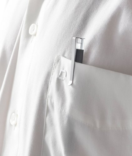 App touch stylus for iPad, iPhone, smart phones, tablets and other touchscreen devices. The stylus has a soft rubber tip to protect displays against scratching and fingerprints. Made of lightweight, matt charcoal grey aluminum with a metal pocket clip.