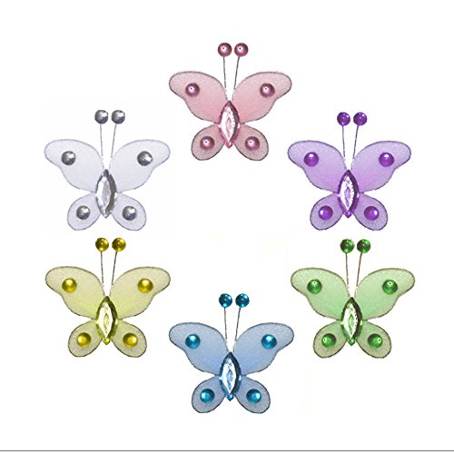 Studio : Bugs-n-Blooms Publisher : Bugs-n-Blooms Product Description Petite butterflies are small yet have a powerful statement, and they are accented with sequins on the antennas and have a beaded body. Nylon mini butterfly decorations are perfect to use in crafts or scattered on tables walls at a party or wedding. Beautiful petite butterflies are perfect to even decorate lamps, furniture wood letters in a baby's nursery. The uses possibilities are are endless on what you can use them for. Bugs-n-Blooms specializes in adorable nylon mesh butterfly decorations which are available in any color, size and style you could image. Our 3D organza decor are perfect to hang from the ceiling and/or attach to the walls. Bugs-n-Blooms decor is made with a soft bendable wire frame and nylon fabric; which are nicely accented with sequins, glitter, and/or beads making them unique which you will love. Most come in different sizes, styles and colors which compliment each other nicely and coordinate with your existing bedding, wall paint, curtains, etc. Our carefully crafted products are made of high-quality materials that are still affordable. Customer satisfaction is our highest priority. Our loyal customers use our handmade decorations for a birthday party, baby shower, wedding, nursery, playrooms, home accents or a little girls garden themed room. See detailed product information above. For tips more decorations, visit our 'How To Hang' page in our Amazon store: www.amazon.com/shops/Bugs-n-Blooms 0