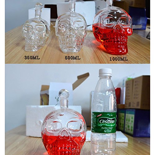-. Feature : Perfect for office, home display, party or collection, and makes a great gift / Can Hold Vodka, whiskey, wine, beer and other drinks. / Stylish Design:Glass Skull Head Shape / Capacity: 350ml / Size:11.5x8.5x14cm (L X W X H)