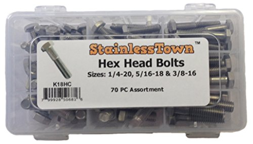 StainlessTown 304 Stainless Steel Hex Head Bolt Assortment K18HC