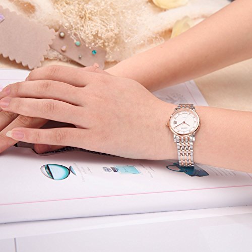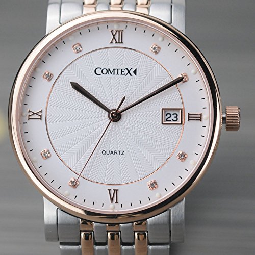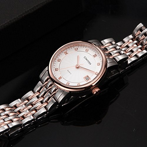 Comtex 레이디스 손목시계 스테인레스 밴드 캘린더 표시 쿼츠 시계 로즈 골드