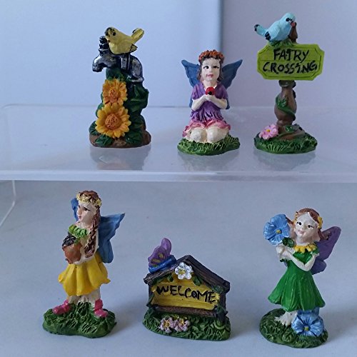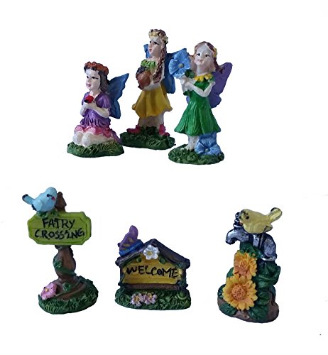 6 Fairy Garden Figurines Miniatures bundle - 2 items 1 pack 3 fairies, 1 pack sign posts