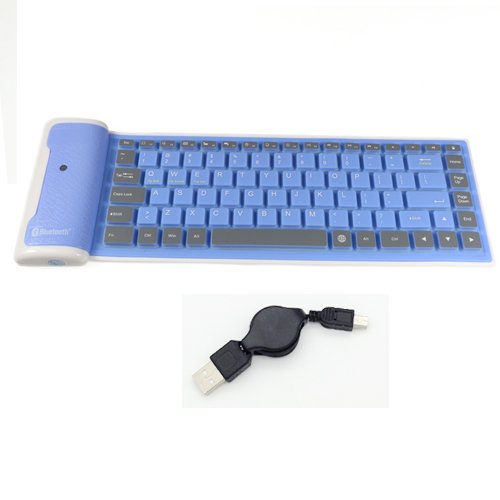 YUMQUA Mini KB-6113 Bluetooth 3.0 Version Silicon Flexible Foldable Keyboard for Ipad Tablet Laptop PC Mobile Phone Blue