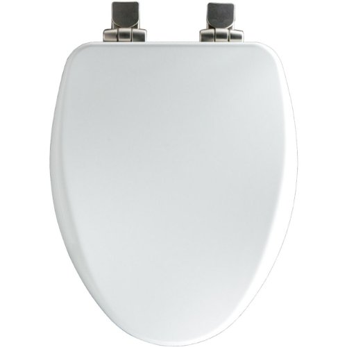 Church 18170NISL 000 Elongated Soft Close Toilet Seat with Nickel Hinges, White