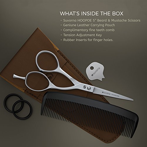 Suvorna HOOPOE 5" Men's Beard & Mustache Scissors with Leather Pouch, Comb & Tension Adjustment key. Trimming, Cutting and Styling Made Easy. These...