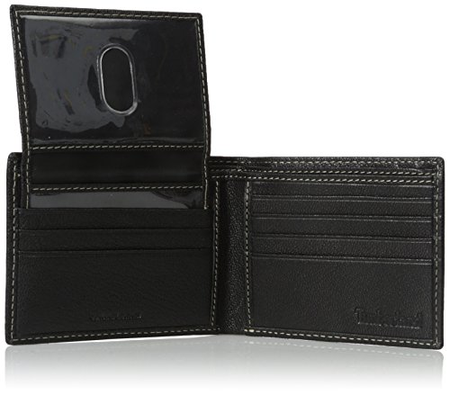 TIMBERLAND WALLET WITH RFID BLOCKING TECHNOLOGY A slim compact RFID mens wallet with lots of storage, 6 credit card pockets, 2 separate bill pockets, 2 hidden pockets, removable flip up ID window with 2 plastic windows.