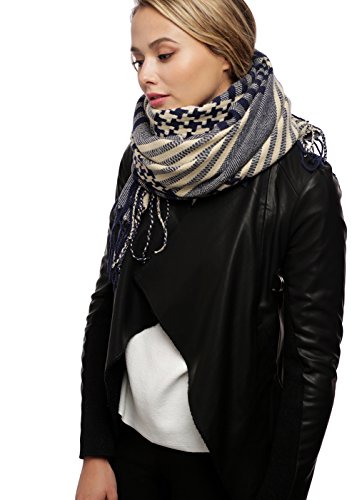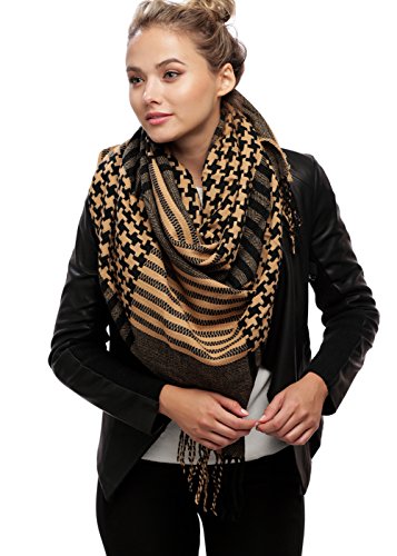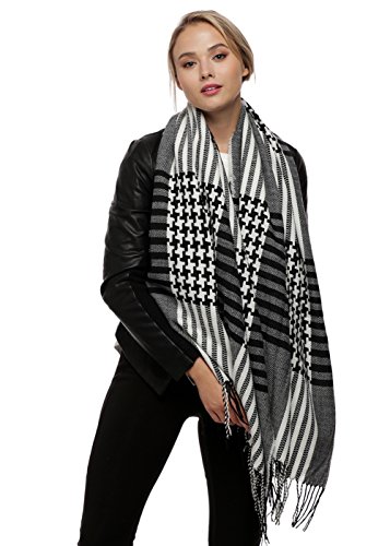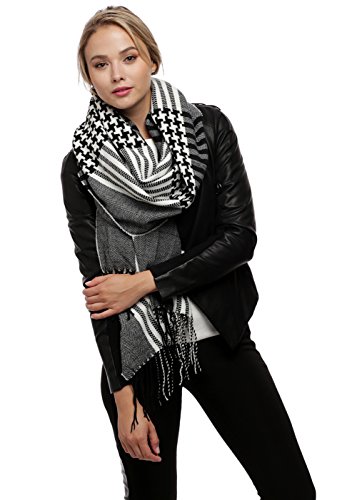 (Mix Match)/Accessories/Cold Weather Accessories/DIRECT FROM USA/Mix Match Women's Two-Tone Check Houndtooth Pattern w/ Fringe Oblong Scarf Shawl