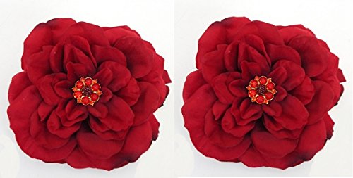 PAIR of Christmas Dark Red Rose Velvety DecorativeTree Clip with Red Rhinestone Center