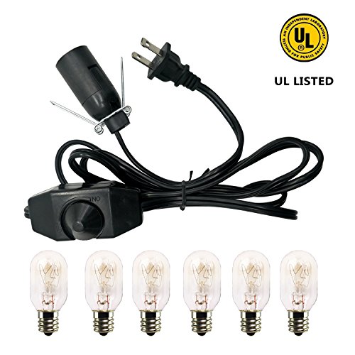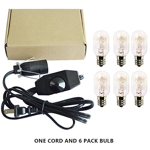 Salt Lamp Cord and bulbs,Himalayan Salt Lamp Replacement Cord with Dimmer Switch,Original UL-Listed Cord Bulb Replacement for Salt Rock Lamp with 6 pack 25w E12 light Bulbs (One cord+6 bulbs)