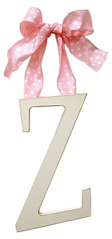 New Arrivals Wooden Letter Z with Pink Polka Dot Ribbon, Cream