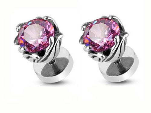 -. Title : Pink Rhinestone Flower Barbell Ear Plug Stainless Steel Barbell (316L Surgical Steel) Silver Tone Fashion Earring Body Piercing (2pc)