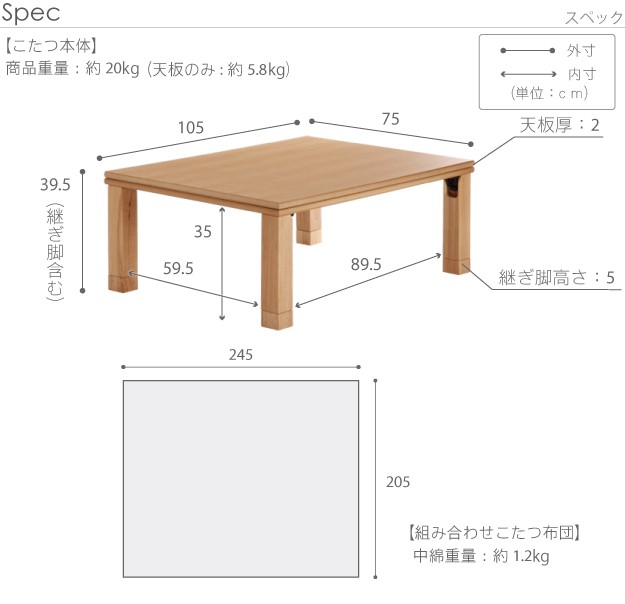 ●天板サイズ:幅105x奥行75cm・厚み20mm・約5.8kg