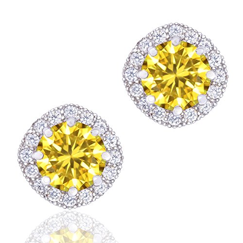 18k White Gold Plated Cubic Zirconia Cushion Shape Halo Stud Earrings (1.90 carats) by Orrous & Co.