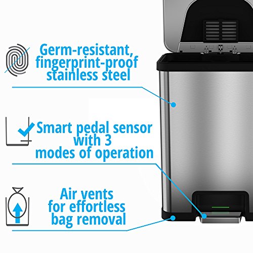 Smart Tap-Sensor Technology – TapCan isn’t just a step trash can, it’s an automatic tap-sensor trash can. Just one light tap on the pedal and the lid will open automatically
