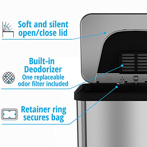 Versatile & Convenient – Any 49 Liter / 13 Gallon trash bag will fit TapCan’s Gull-Wing Bag Retainer Ring - hides trash bag inside the trash bin easily - Antimicrobial, fingerprint-proof, and easy to clean stainless steel finish. It’s the perfect kitchen trash can