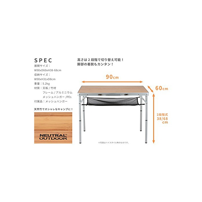 원본상품명: NEUTRAL OUTDOOR(ニュトラルアウトドア) 天然竹使用の折りみキャンプテブル NT-BT01 バンブテブル L 23467