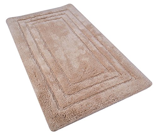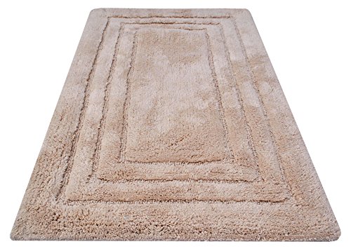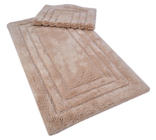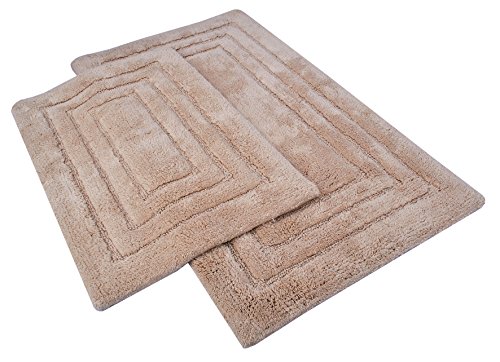 Value Homezz ( 2 Piece Bathmat Set ) Tri-Arena 100% Super Soft Cotton Tufted Accent Bath Rugs Size 21 x 34 / 17 x 24 Non Skid High Absorbency & Durable Machine washable Bath Mat (Beige)