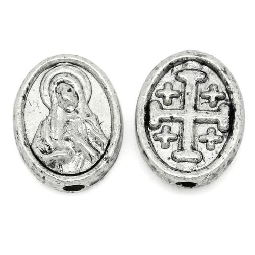 20pc Antiqued Silver Mother Mary & Cross Spacer Beads 10x8mm Beading Supplies
