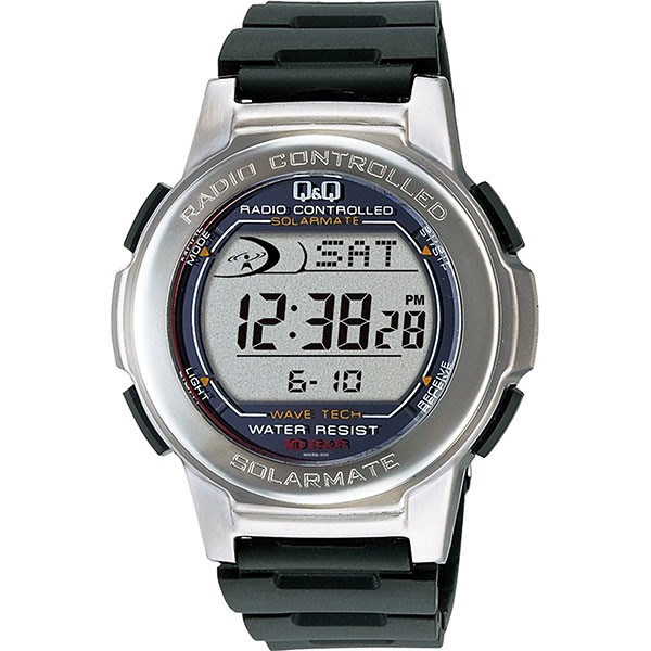 バンドカラー:ブラック、文字盤カラー:グレー、ケースの形状:ラウンドフェイス、表示タイプ:デジタル表示、留め金:バックル(尾錠) トリプルカレンダー、 LEDライト 、 アラーム 、ソーラー電波時計 日本標準電波(福島局/九州局)受信、10気圧防水、フル充電時30ヶ月連続使用可