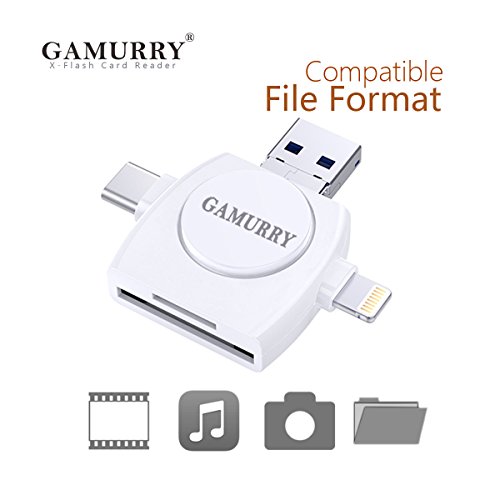 card reader has four interfaces: Lightning connector is for iOS devices; Micro USB connector is for Android devices; USB connector is for computers/Macs;Type-C connector is for Type-C devices.(Android phone must with OTG function)※ Backup your important Photos, Music, Videos, and Contact list.