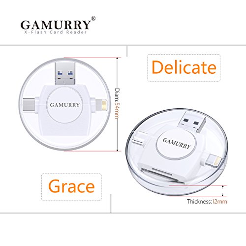 ※ widely fit multi-function card reader: it has four interfaces, lightning iOS devices connectors; Microusb connector can match with Android device; USB connector for computer/MAC computers; Type - c connector is used for type - c equipment.