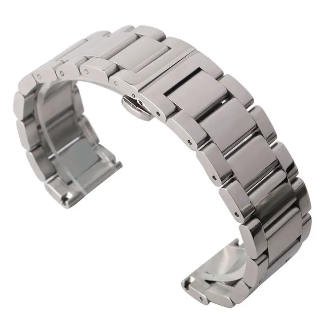 | [해외]슈퍼 높은 품질의 손목 시계 18/20/22 미리메터 스테인레스 스틸 폴란드어 실버 손목 시계 스트랩 솔리드 링크 교체 + 2 봄 바 |