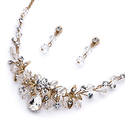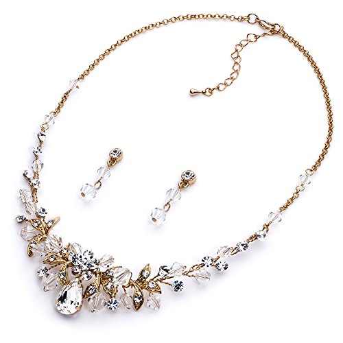 -. Binding : Jewelry -. Brand : USABride -. Department : Womens -. Feature : Contemporary design featuring a bold center rhinestone surrounded by gorgeous Swarovski Crystals and rhinestone encrusted floral leaves / This set is 14-kt gold plated / Set lays beautifully on the neckline / Center design measures approximately 6 inches wide with the drop at 1 inch / Necklace measures 15 to 17 inches and can be adjusted with the attached extender chain -. Label : USABride -. Manufacturer : USABride -. Model : JS-1623-G -. ProductGroup : Jewelry -. ProductTypeName : FASHIONOTHER -. Publisher : USABride -. Studio : USABride -. Title : USABride Swarovski Crystal & Rhinestone Gold-Tone Bridal Jewelry Set, Necklace & Earrings 1623-G