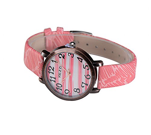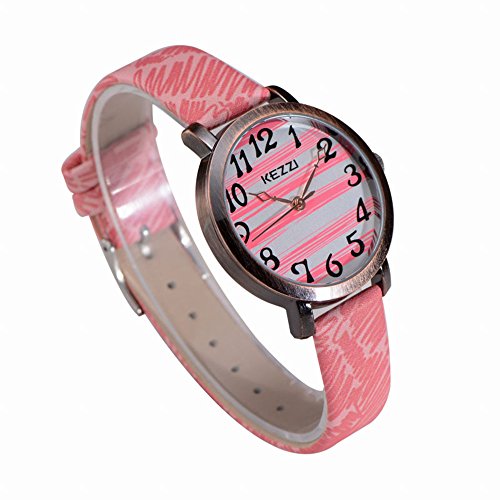 -. Title : Kezzi Kid Girl Rose Color Leather Stripe Watch with Japan Movement
