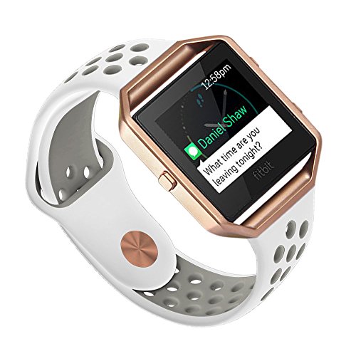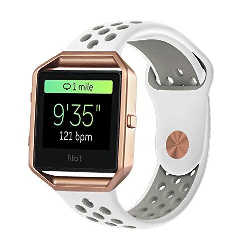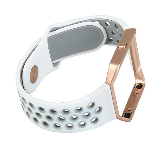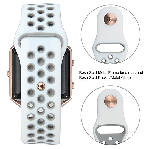 V-Moro for Fitbit Blaze Bands, Small Replacement Strap Silicon Sport Bands with Rose Gold Metal Clasp For Fitbit Blaze Smart Fitness Watch 5.7 -7.8 Inches (White / Gray - Small)