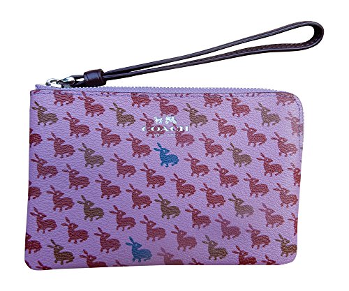 Coach Bunny Print Corner Zip Wristlet, Lilac, Multi