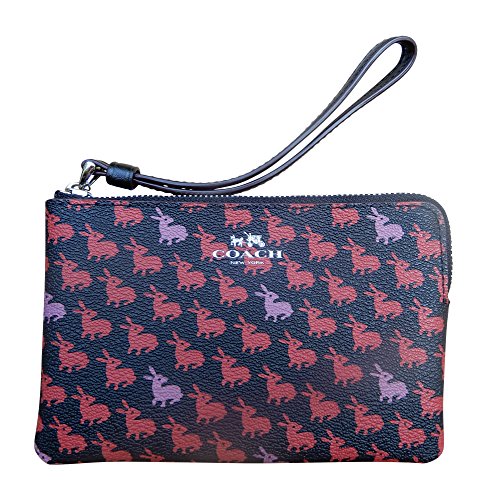 Coach Bunny Print Corner Zip Wristlet, Black, Multi