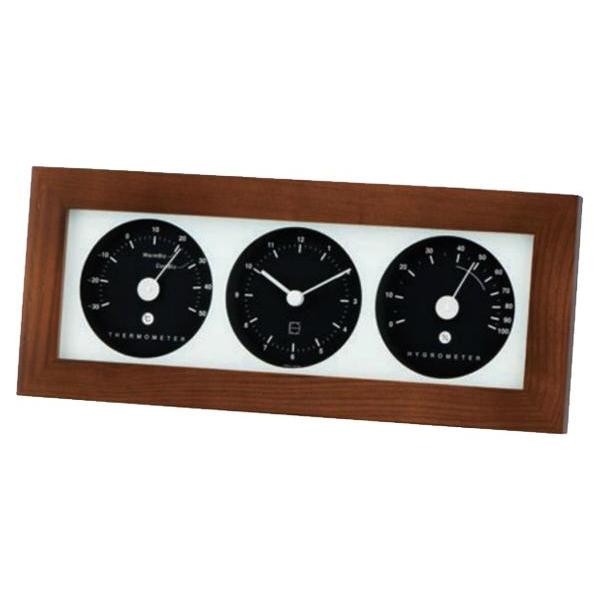 温度計・湿度計・時計の機能を備えています。材質は天然木を使用。