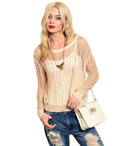 -. Feature : Scoop neckline, long sleeves, sheer open knit fabric, cropped hemline, and ribbed trim. / Measurements are for size SMALL(Junior Sizing): [17257]:Bust-18" Waist-20" Length-15". [T4084]:Bust-20.5" Waist-22" Length-16.5". [S3017]:Bust-22" Waist-16" Length-17".