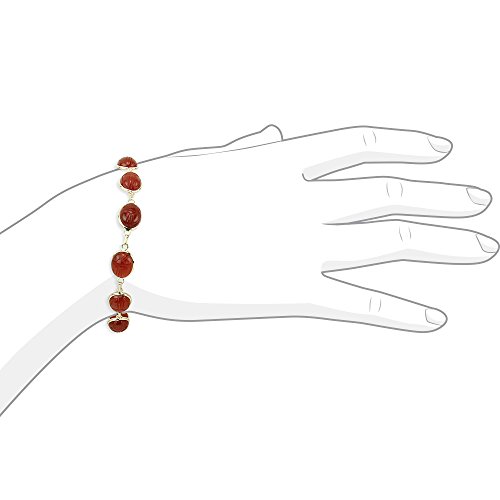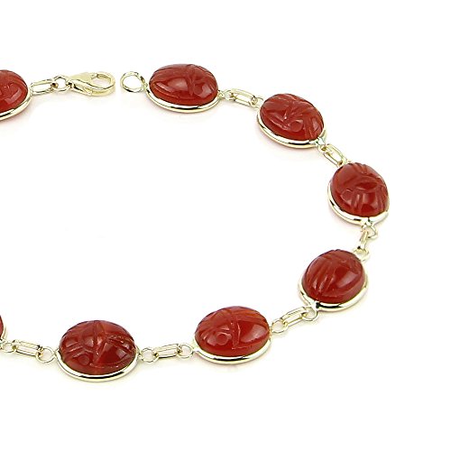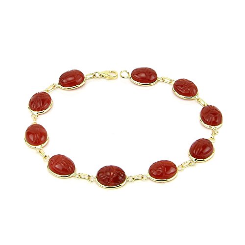 -. Title : 14k Yellow Gold Scarab Bracelet with Carnelian Gemstones 7.25 Inches