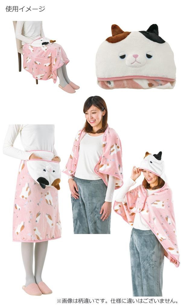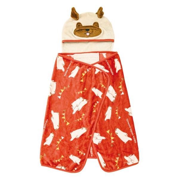 | 滑らかな肌触りのフランネル生地にねむねむたちをプリントデザインしたブランケット。シンプルにひざ掛けとして、お家でほっこりしたいときやアウトドアなど寒いときにはボタンを留めてボレロやポンチョや腰巻として、フード部分にブランケットを収納するとフェイスクッションにもなります。使う場所や気分などによって色々使えるので1枚あると便利です。薄いのに暖かく、お洗濯してもすぐ乾くのがうれしいポイントです。 |