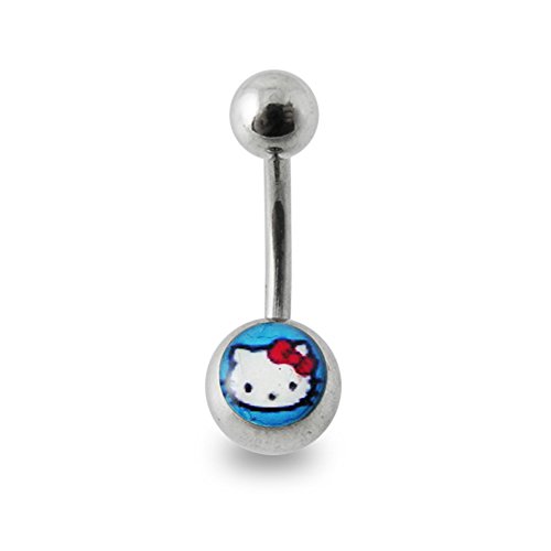 Hello Kitty Logo on Light Blue Background Belly Ring