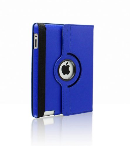 SAVEICON Royal Blue PU Leather Case Smart Cover 360 Rotating Stand For The Apple iPad 2 / 3 / 4 Generation with Retina Display, iPad 3 and iPad 2 with Sleep and Wake Function