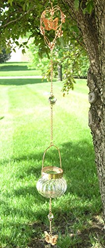 Hanging Butterfly and Heart Chimes - Hanging Glass Tea Light Candle Holder - Hanging Garden Chimes - 40 Inch High