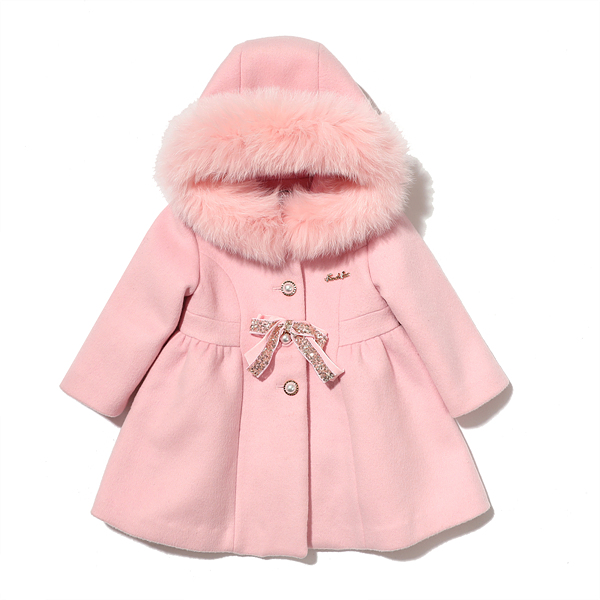 상품설명 핑크 모직 후드코트입니다. 안쪽 3OZ 다이아퀼팅 누빔처리 되어있고요. 탈착 가능한 폭스퍼 트리밍이 고급스러워 보입니다. 하이웨이스트 라인에, 드레시한 코사지를 포인트로 주었습니다.